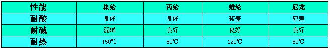 5、滤板和滤布的选择:根据所处理物料选择不同材质的滤板和滤布。滤板材质有球铁、橡胶、聚乙烯和聚丙烯;滤布有无纺布和纺织滤布,材质和特性如下表: